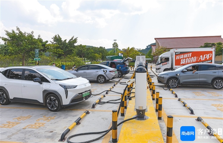 在琼乐高速琼中服务区,新能源汽车正在充电。海南日报记者 李天平 摄