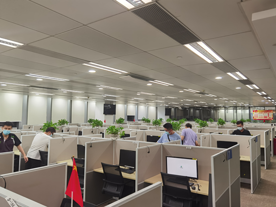 兵马未动,粮草先行。由于“大本营”位于疫情形势严峻的荔湾区,立足坐席区人员密集、热线服务设备专业、咨询服务不能中断等实际,12366热线主动研判制定情景化的应急预案,建立话务预警机制和分流机制,协调多方资源备好应急话务场地,加班加点布置了150个应急坐席,确保应急启动时能第一时间“无缝对接”,争取用充足的场地空间换来服务纳税人的宝贵时间。