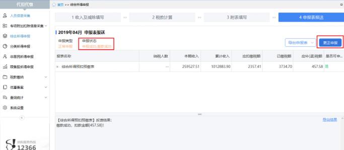 综合所得个人所得税预扣预缴申报成功之后,发现有错报、漏报的情况,可使用【申报更正】功能,修改已申报数据后重新申报。