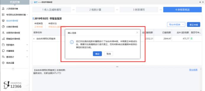 3、点击【更正申报】按钮,启动更正申报,系统提示往期错误更正申报成功后,需要对后续税款所属期的综合所得预扣预缴申报表进行逐月更正。