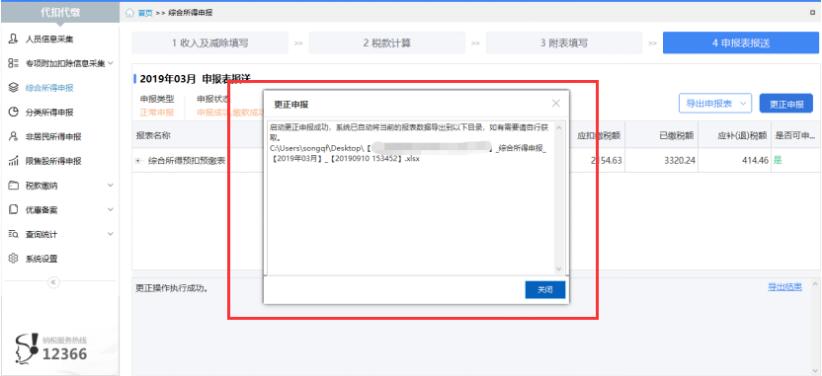启动更正时,系统会自动导出一份当前有效的申报记录供纳税人留存备用并提示保存路径(默认为桌面),每次导出的备份文件可根据时间不同进行区分。