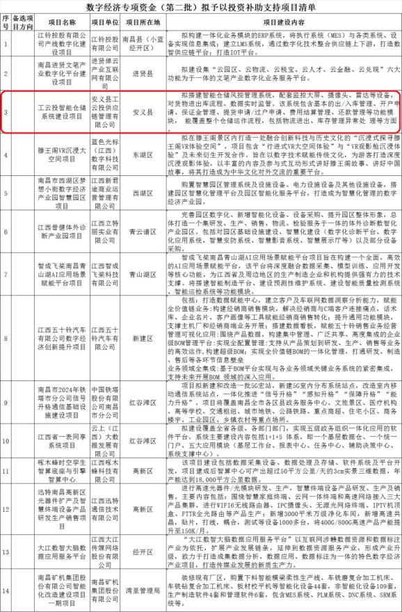 据介绍,经县区推荐申报,南昌市发改委组织了第三方评审、现场踏勘并征求相关行业部门意见,将拟安排投资补助的江铃控股有限公司产线数字化建设项目等14个项目予以公示。对公示项目如有异议,可于2024年11月22日前向南昌市发展和改革委员会(数字经济科)反映。