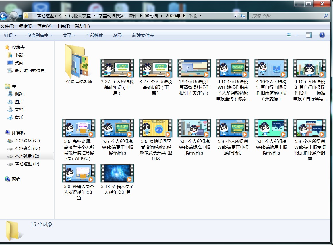 个人所得税类系列网络动漫微课程