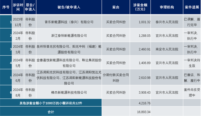 因此,今年夏天市场中也有传闻,帝科股份为了讨要欠款,直接去客户工厂拉光伏产品抵债。也可能是为了应对市场传闻,帝科对外正式披露了涉诉事项。不知道从夏天到秋天,再到冬天,帝科股份需要通过司法途径追讨的欠款,又增加了多少?