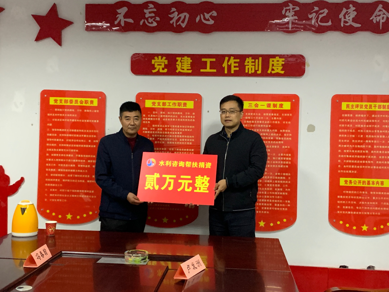 11月20日,省水利工程科技咨询股份有限公司党委书记、董事长颜红勤和省水资源协会秘书长翟高勇一行专程来到淮调研帮扶工作,并赴高堰村开展爱心捐赠,区扶贫办、区水利局、高家堰镇政府负责同志及帮扶⼯作队队员蒋咏等参加活动。调研组一行首先来到贫困户华某和吕某家,与他们亲切交谈,了解他们“两不愁三保障”、家庭增收、子女教育等情况,并为他们送去慰问品和助学金。随后,调研组考察了省委驻淮阴区帮扶工作队在高家堰镇的帮扶项目建设现场,与区、镇、村干部和帮扶工作队员进行了座谈交流,为高堰村党总支捐赠4万元“党员活动室”修缮金。