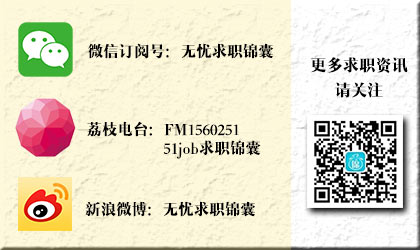 欢迎关注微信订阅号“无忧求职锦囊”,下载“求职锦囊”APP