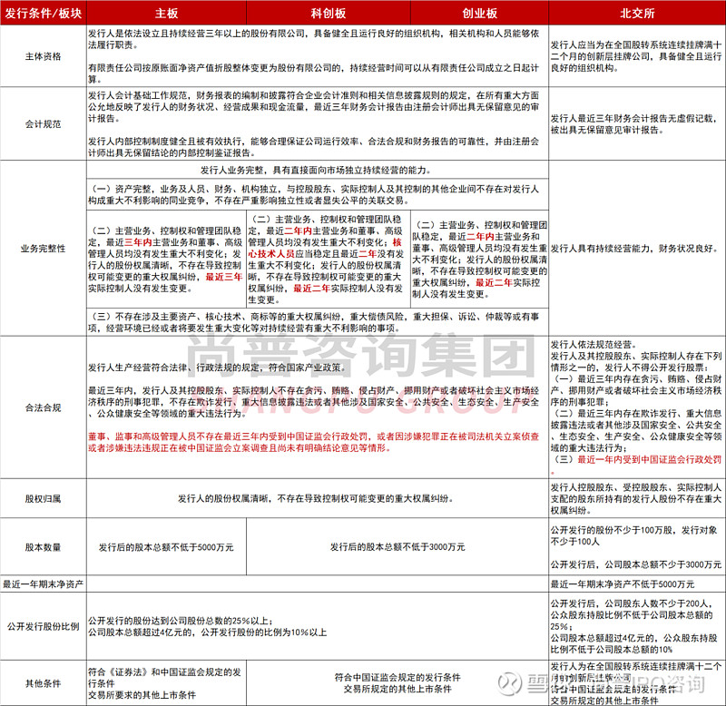 3、主板、科创板、创业板基本适用统一的发行条件,在实际控制人变更、股本数量等方面针对不同板块的情况有年份和金额的差异。