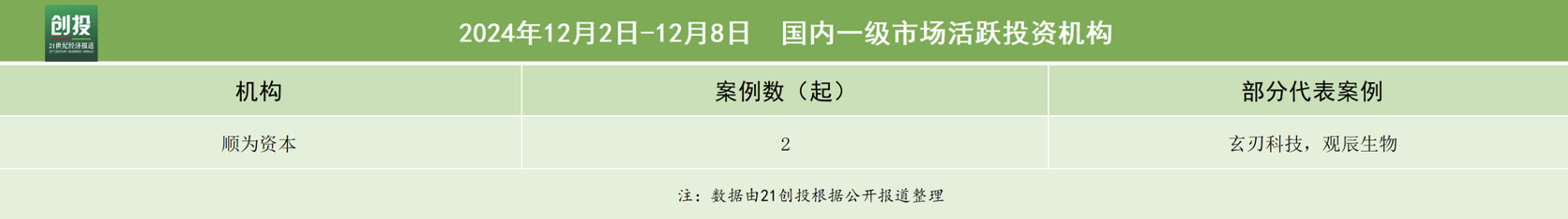 从机构投资活跃度来看,本周顺为资本较为活跃,完成2笔融资,主要聚集在医疗健康领域。