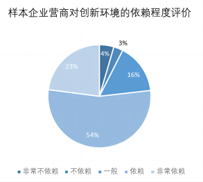 上海创新产业占比大。2022年,全年实现地区生产总值(GDP)44652.80亿元,其中战略性新兴产业增加值10641.19亿元,占上海市生产总值的23.8%。因此,营造好的创新环境尤为重要。《上海市优化营商环境条例》强调“加强知识产权保护工作”“支持创新创业集聚区建设”。调查显示,77%企业代表认为他们的业务发展依赖或者很依赖于良好的产权保护和创新支持
