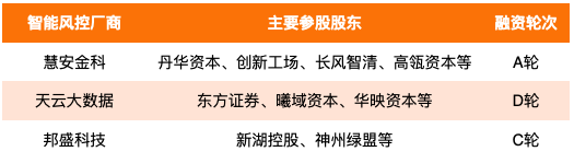 目前与金融机构建立紧密合作的智能风控厂商有慧安金科、天云大数据、邦盛科技等。