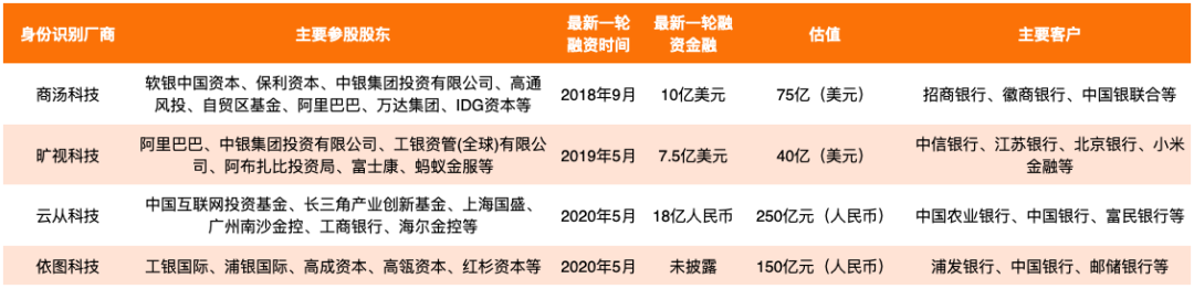 1、身份识别厂商:AI识别“四小龙“获知名投资机构多轮融资