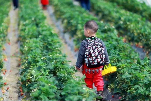 在这里你可以和家人孩子、朋友一起享受采摘的乐趣,情侣秀恩爱,相互为对方拍美美的照片;大人和老人沉浸在采摘草莓的乐趣中,步履不停;而可爱的孩子们更是乐此不疲,边摘草莓,边往盆里装,时而惊奇,时而露出天真的笑容。