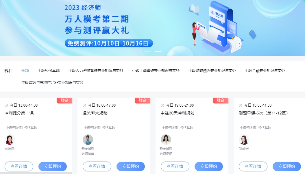 为帮助大家高效备考2023中级经济师考试,环球网校老师给大家准备了各类免费直播课程,点击领取2023年中经考试免费直播课。