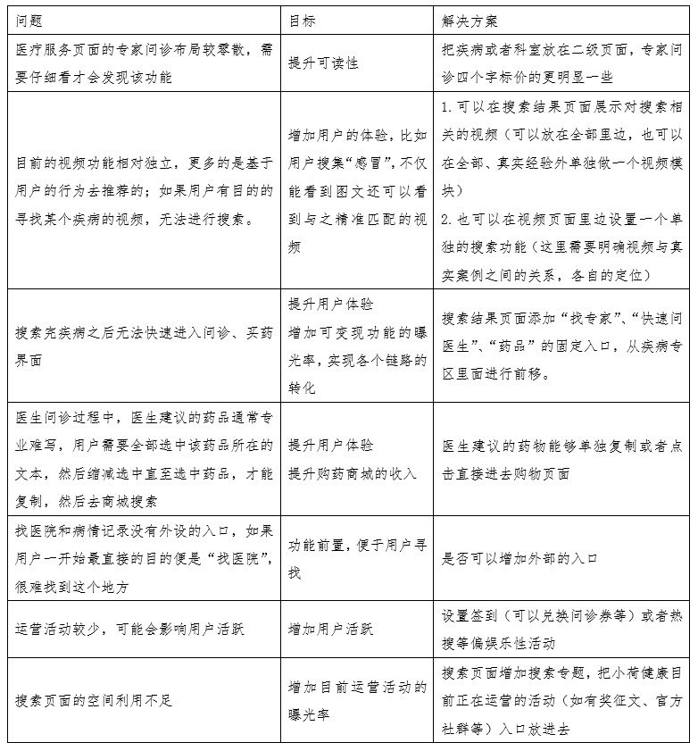 个人建议在搜索结果一级页面添加“找专家”、“快速问医生”、“药品”的固定入口。