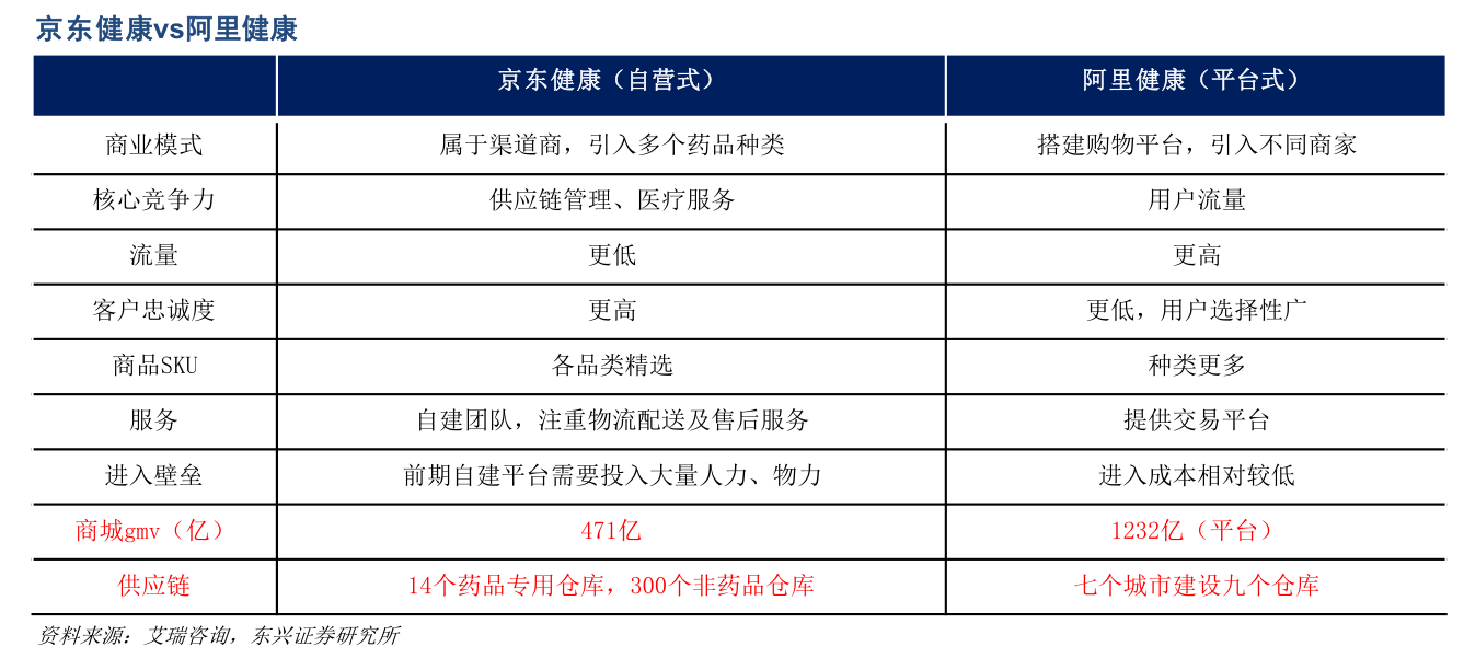 医药电商领域,阿里健康(医鹿)和京东健康是最大的两家企业,两家均已上市,商业模式有所不同。
