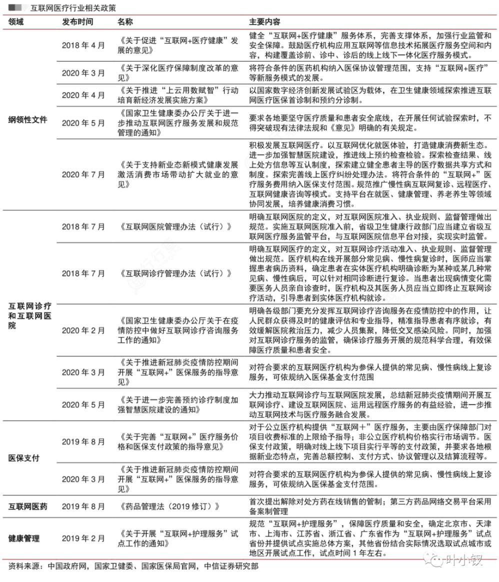 二、行业分析 1. 互联网医疗行业概述互联网医疗是指综合利用大数据、云计算等信息技术使得传统医疗产业与互联网、物联网、人工智能等技术应用紧密结合,形成诊前咨询、诊中诊疗、诊后康复保健、慢性病管理、健康预防等大健康生态深度融合系统,实现利用互联网对个体健康进行全过程的跟踪记录,成为一种新型业态的医疗健康服务体系。