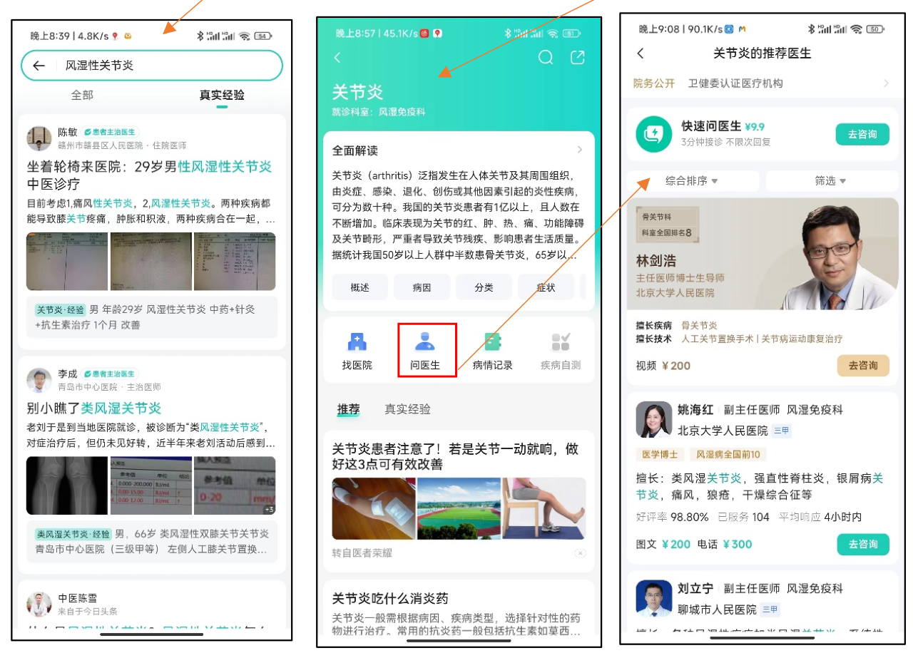 总结:我们可以看到两款APP在在线问诊方面都花费了较大的力气去优化和迭代,可以看出在线问诊对于互联网医疗APP的重要性。