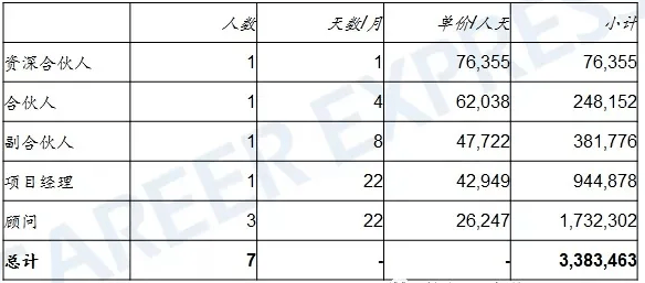 这个典型项目一个月的咨询费是338万,这只是一个市场报价,未考虑实际成交打折因素。