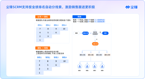 除了常见的奖金激励,现在企业还可以通过线索获取数量对销售进行工作激励。通过尘锋SCRM,支持企业配置「按业绩排名」自动分配线索,让能力强、业绩好的销售优先拿到更多线索资源。