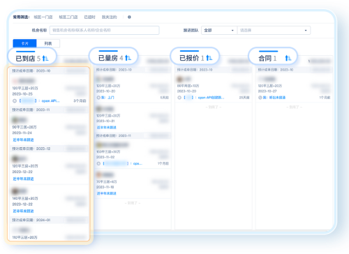 通过销售机会看板,管理者可以快速了解业务情况,并针对客户情况提供针对性建议,以及匹配必要资源,这样可以帮助企业有效提高销售转化效率,促进更多成交。