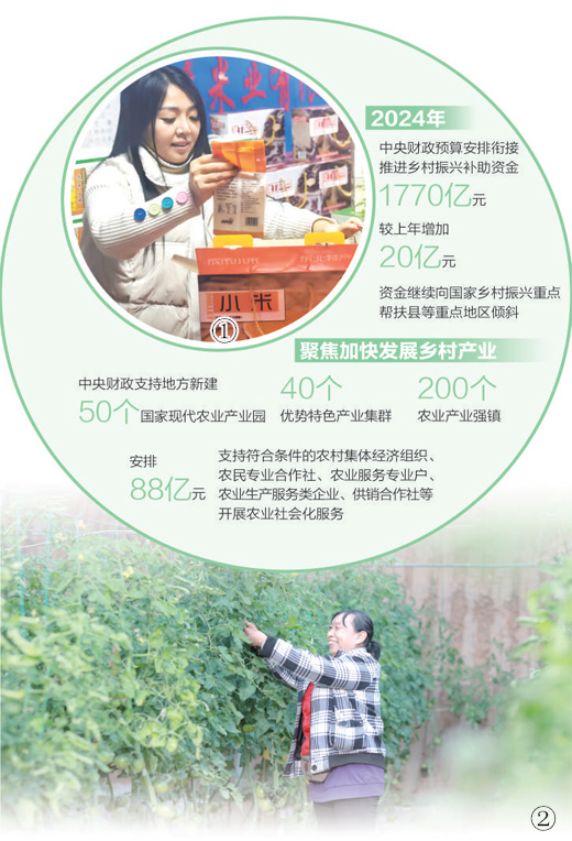特别是聚焦加快发展乡村产业,中央财政支持地方新建50个国家现代农业产业园、40个优势特色产业集群、200个农业产业强镇,加快构建现代乡村产业体系;安排88亿元,支持符合条件的农村集体经济组织、农民专业合作社、农业服务专业户、农业生产服务类企业、供销合作社等开展农业社会化服务。