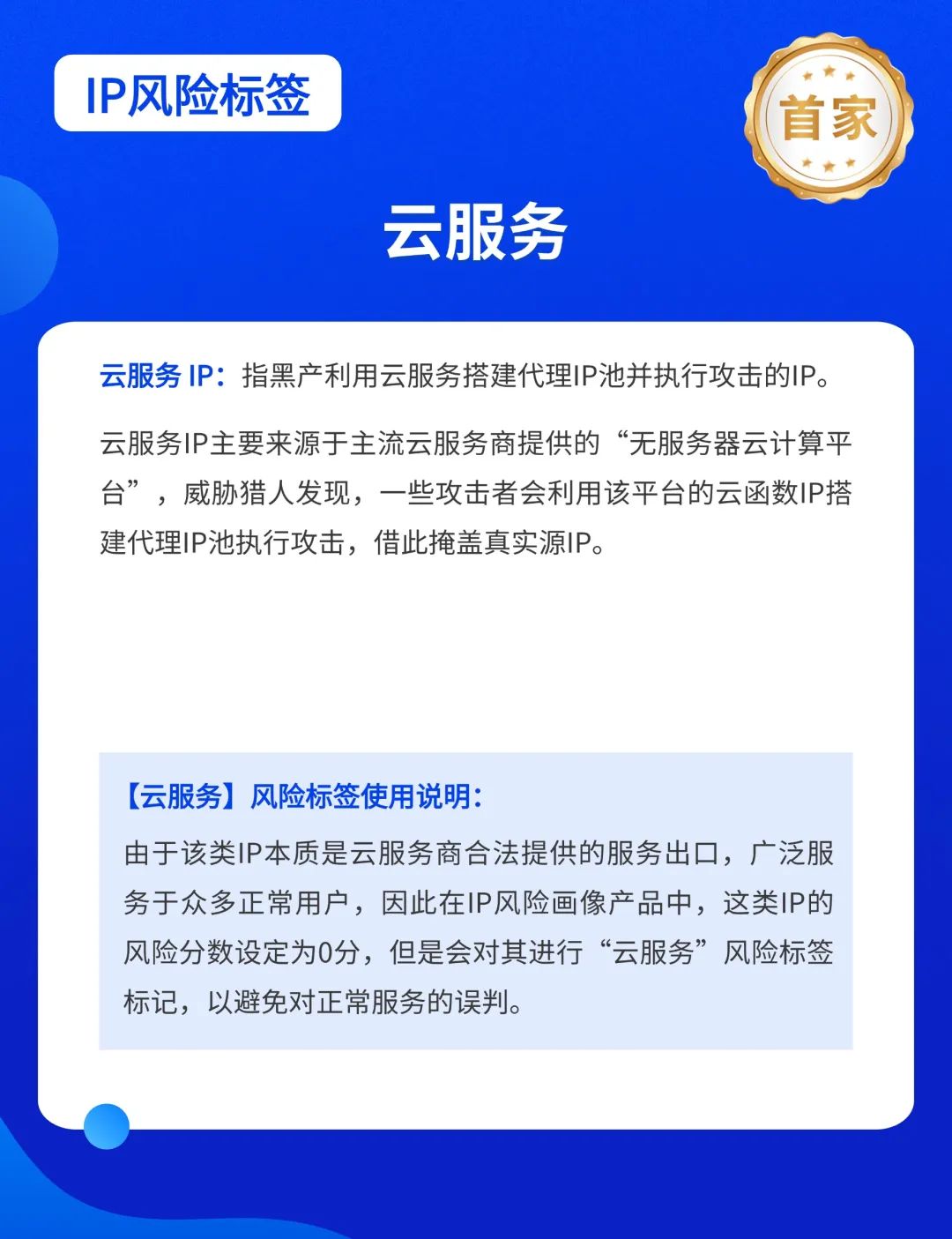 近年来,威胁猎人陆续发现正常用户与不法分子混合使用的作恶IP类型,并对其进行深入研究,于2024年推出「劫持共用代理IP」、「云服务IP」、「云手机IP」等风险标签。