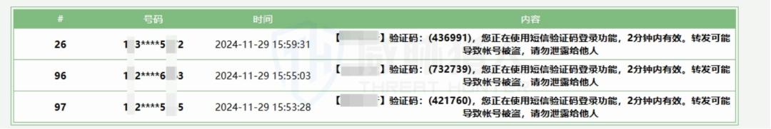 这种模式下,拦截卡卡商隐藏真实号码,仅展示打码号码,只有黑卡购买者可获取完整号码完成接码作恶。
