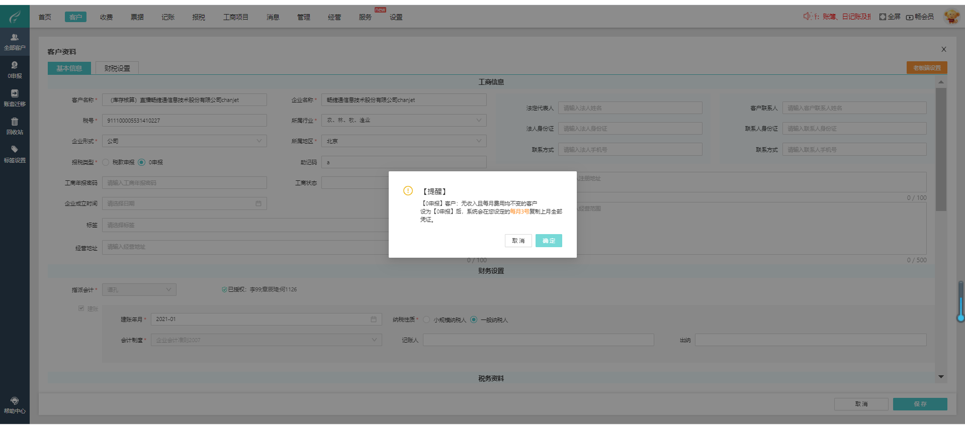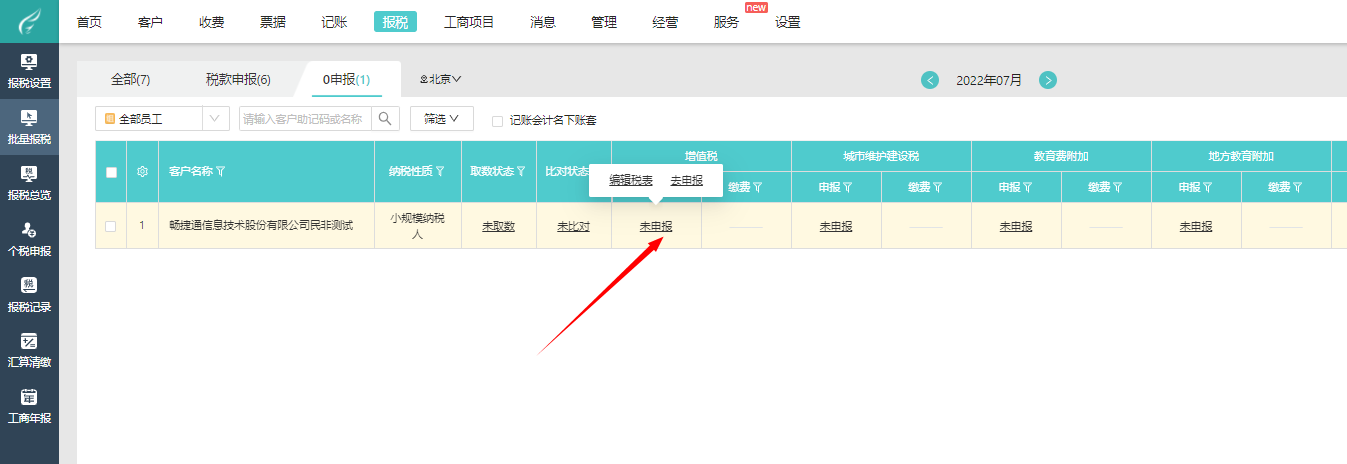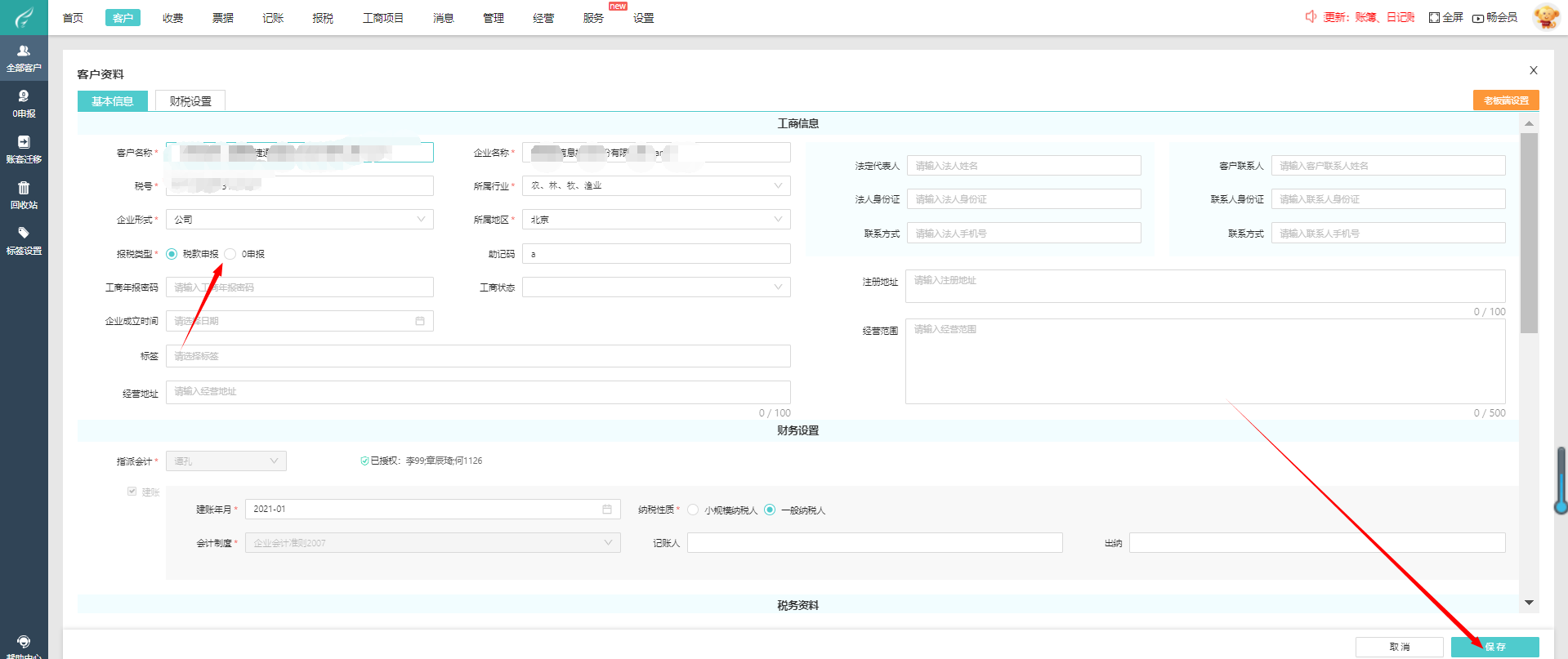 进入【客户】--点击客户抬头-报税类型,选择0申报