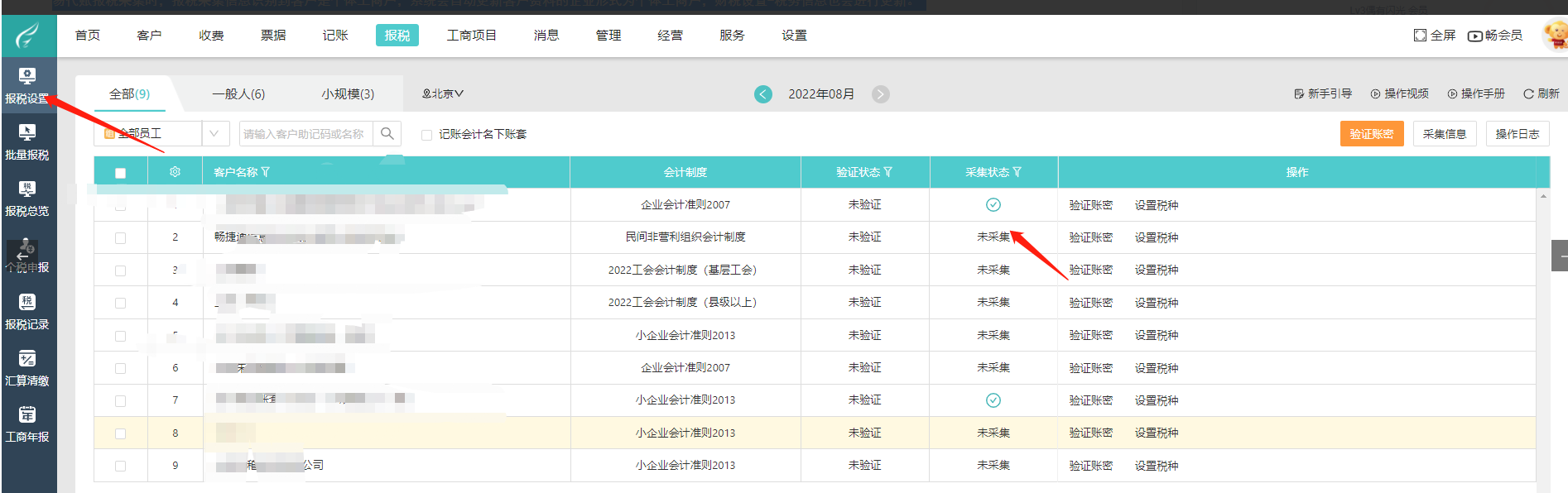 点击未申报,或者选中账套点击批量申报,进入申报设置页面。