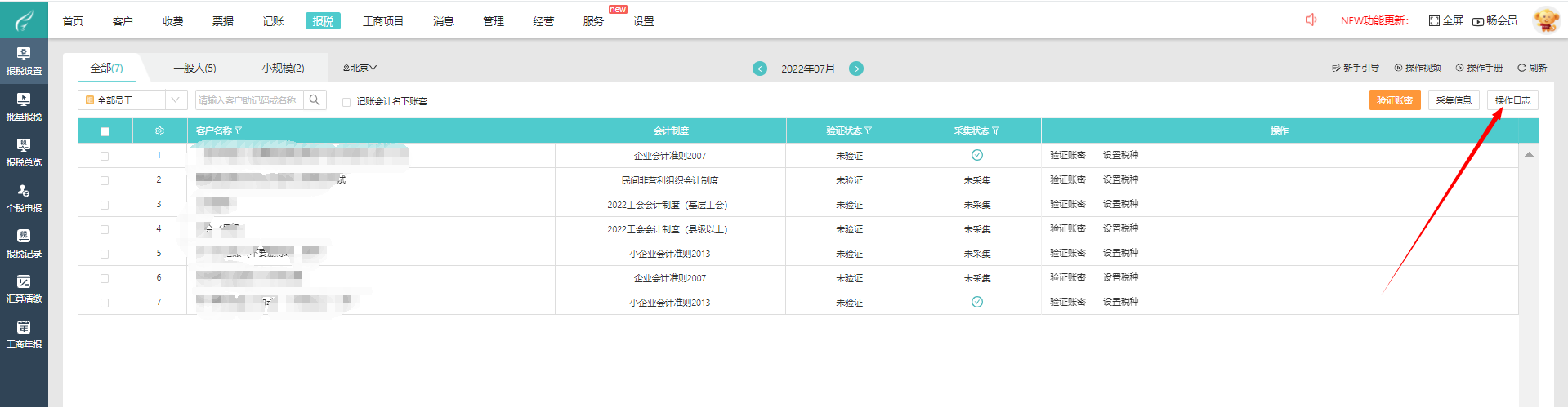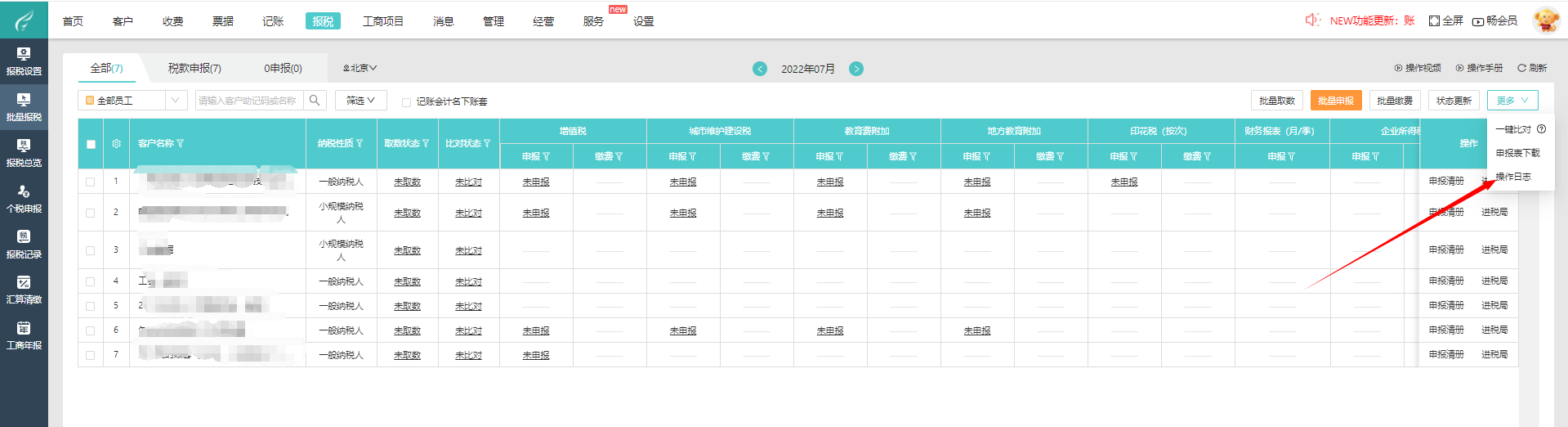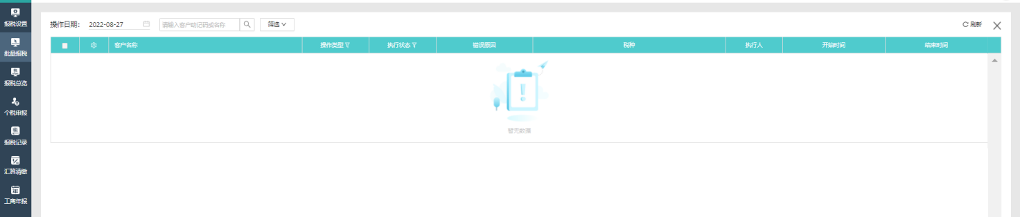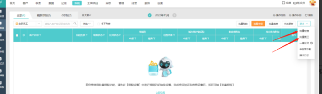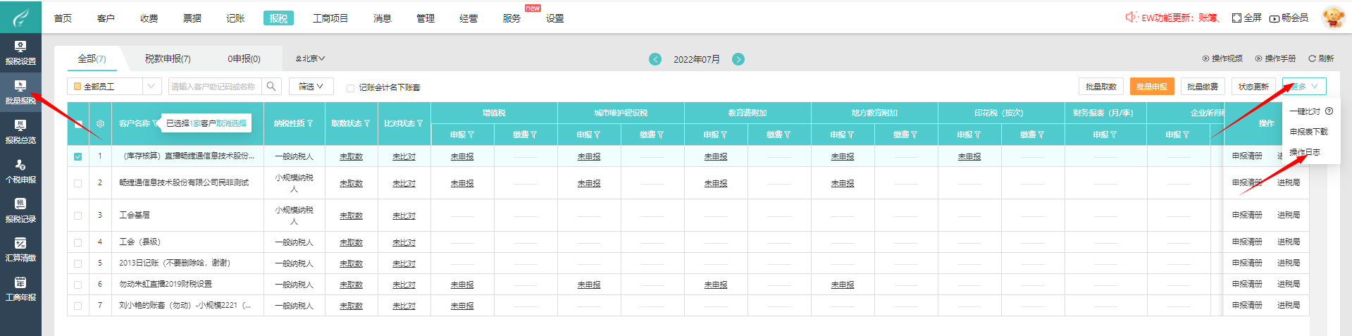 新增批量报税检查,批量更正功能。目前只支持天津和云南,且云南只支持批量更正个体工商户核定征收的税种。