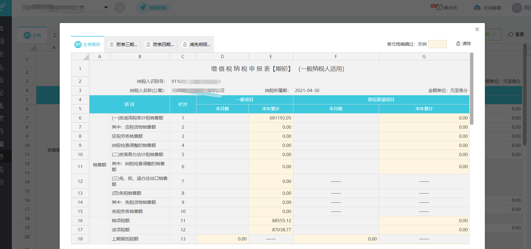 取期初成功之后,需要进入易代账的【税务管理】---【增值税申报表】进行查看期初