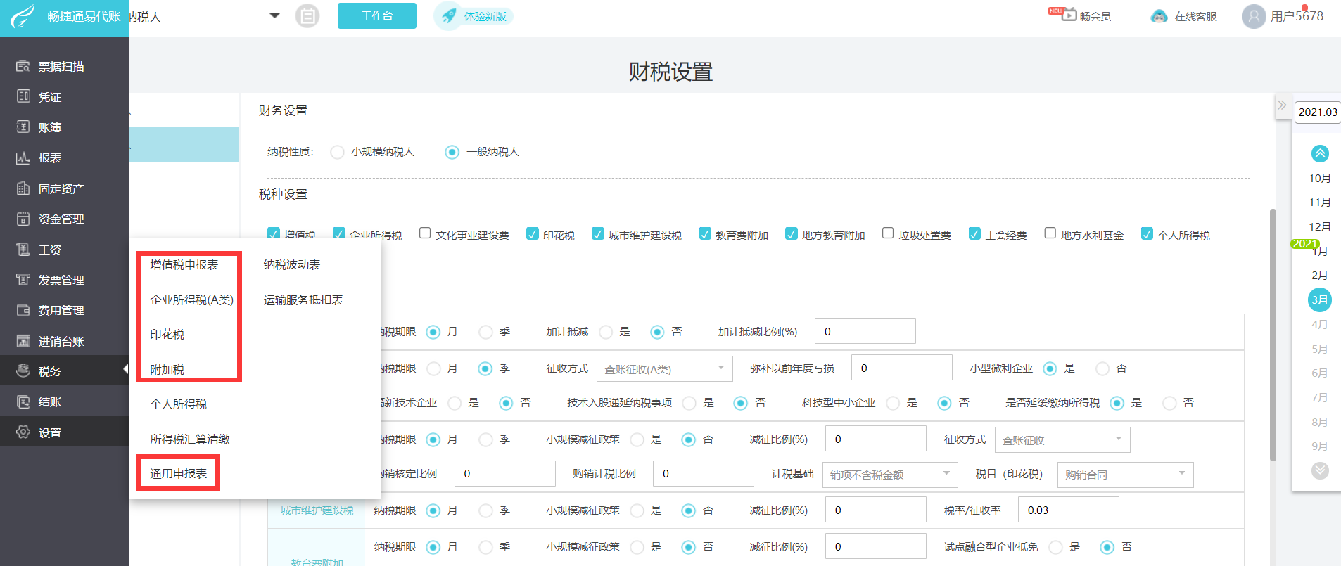 ⑤、通用申报表:包含了“地方水利基金、工会经费、垃圾处置费”这张表各地方申报方式不完全一致,这些税种主要通过“财税设置”中的相关税项设置规则来计算;
