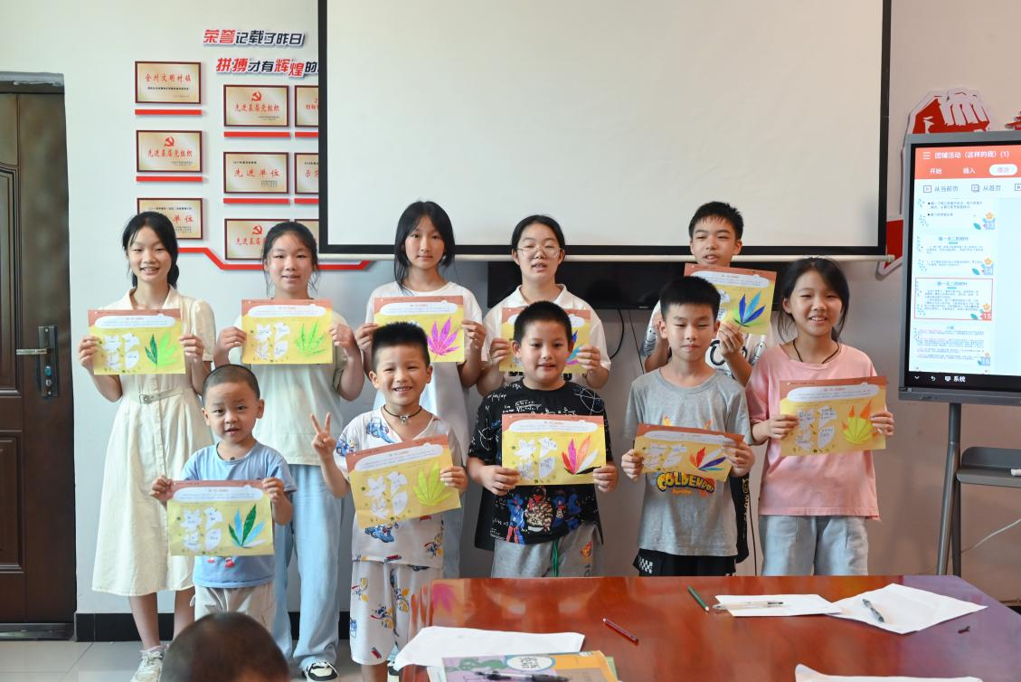 7月19日,湖南财政经济学院同衿志愿队17名志愿者走入湘西土家族苗族自治州泸溪县岩门溪村,给该村20余名孩子送去一堂别开生面的趣味课堂。