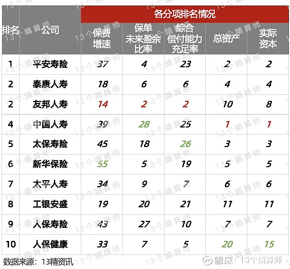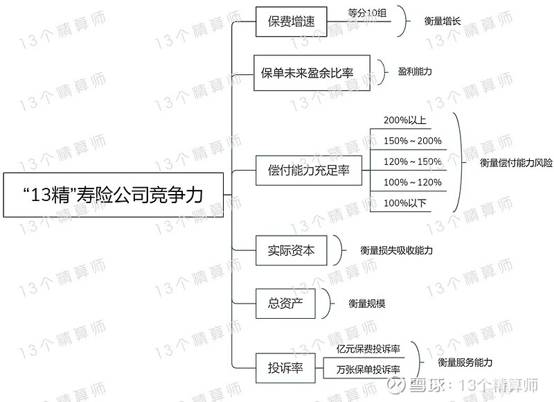 为综合去看一家险企的经营情况,我们从风险、盈利、发展、规模等方面,选取了6项指标,自2016年推出《“13精”综合竞争力排名榜》,至今已经连续发布五十八期。