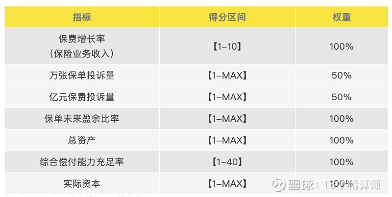 亿元保费投诉量、万张保单投诉量,按照排名由多到少,依次赋予1分至最高分。
