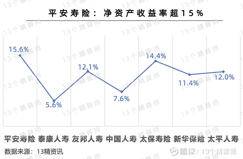 二是,平安寿险的净资产收益率高达15.55%,在头部寿险公司中最高,如上图所示。