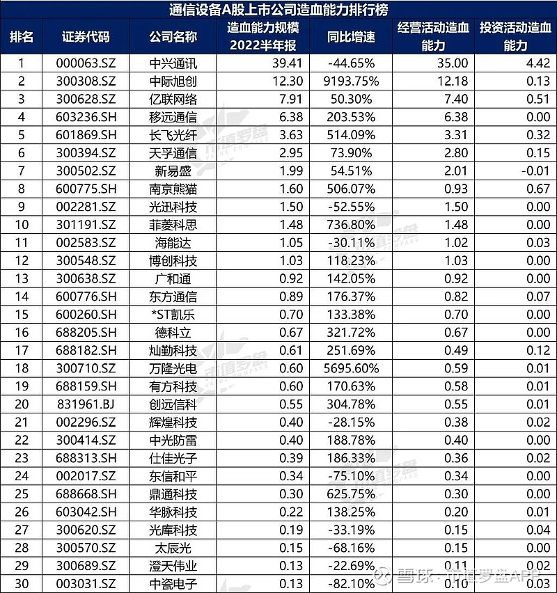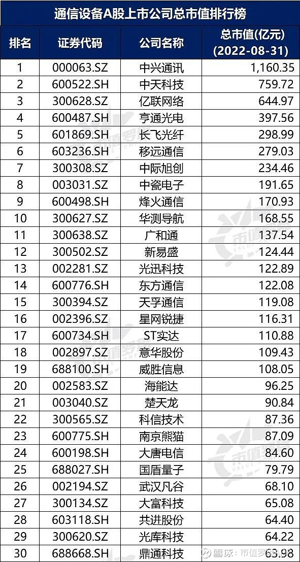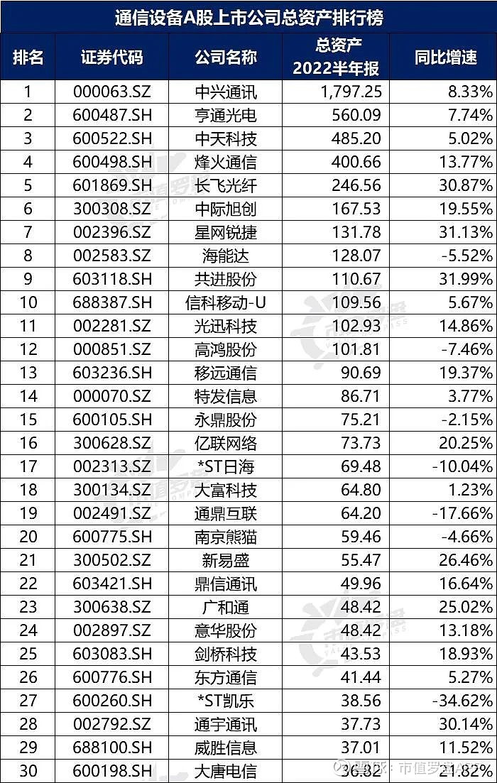 中国A股通信设备上市公司高质量发展排行榜!(2022半年报) 截至2022年8月31日,通