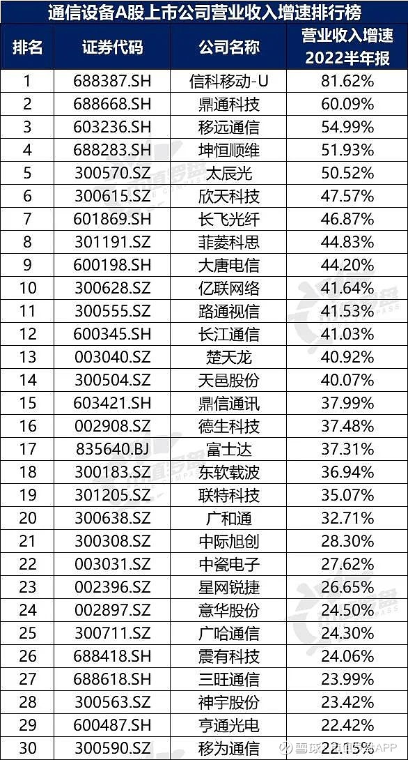 图6:通信设备行业A股上市公司营业收入增速排行榜