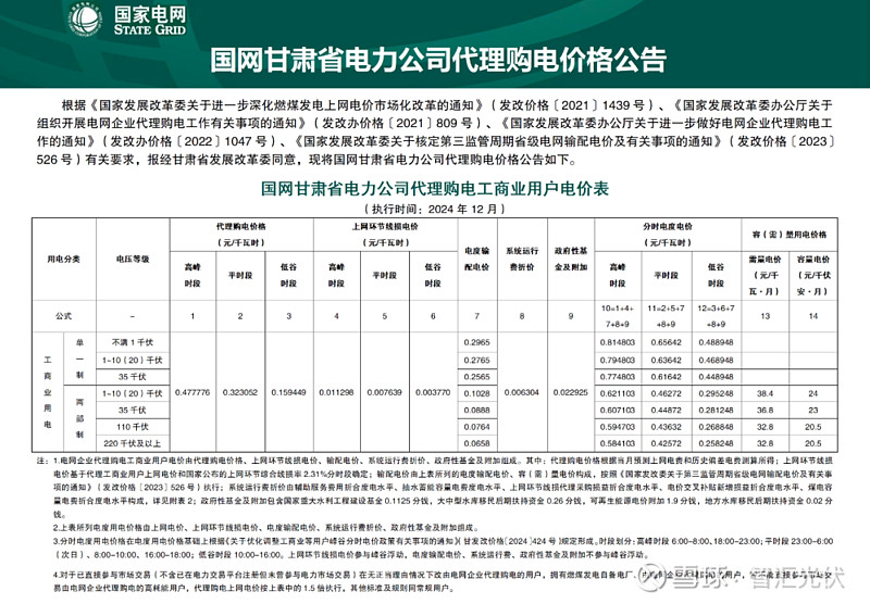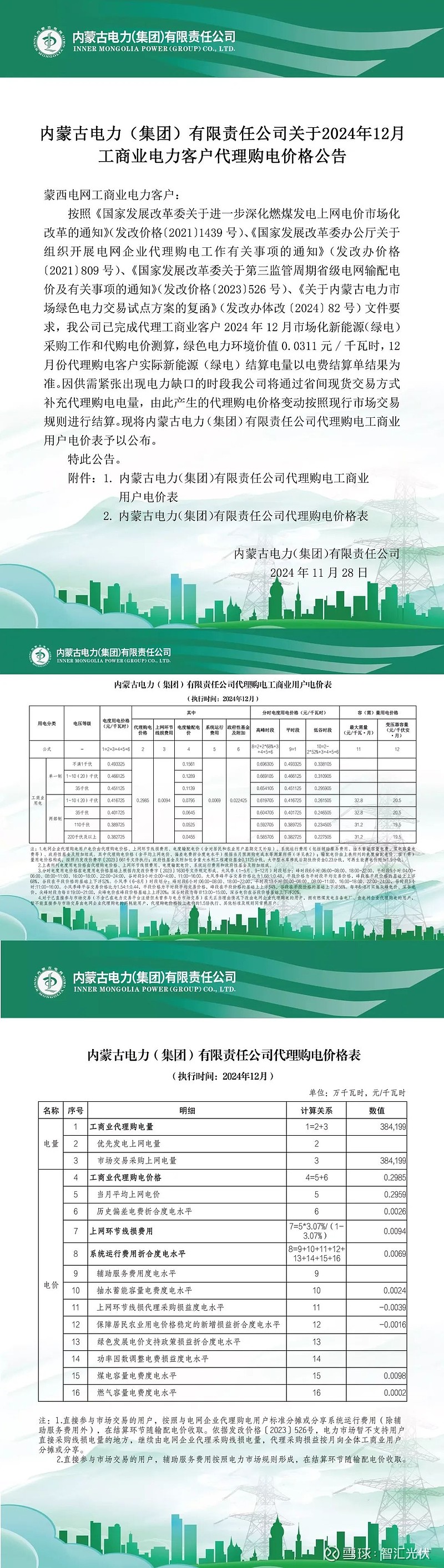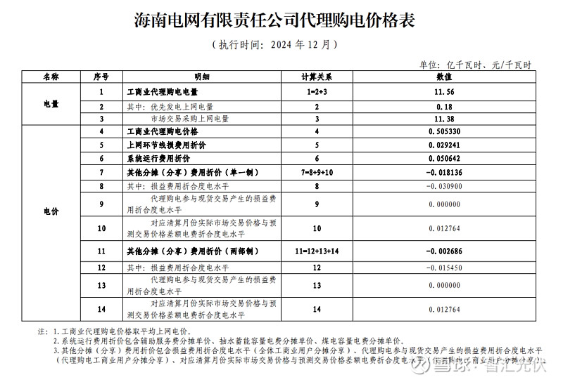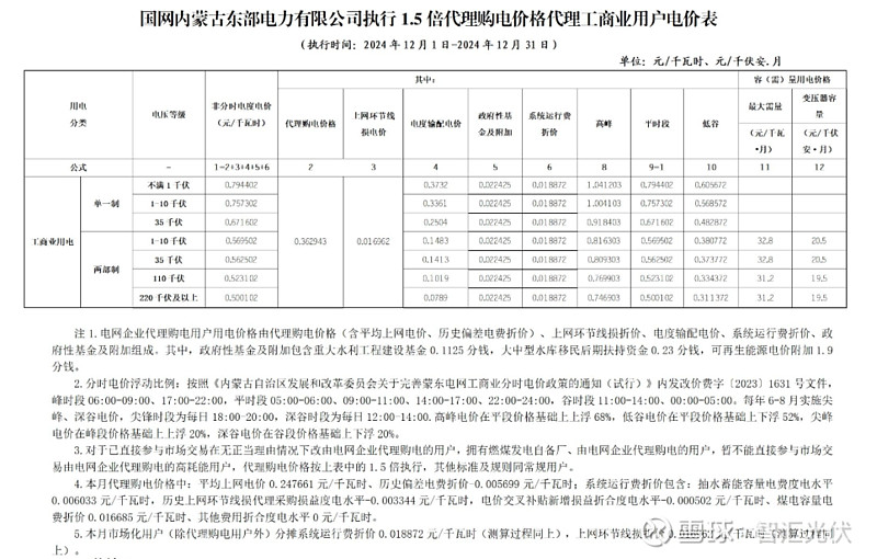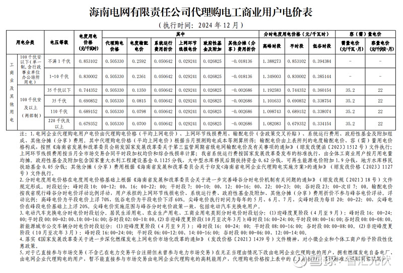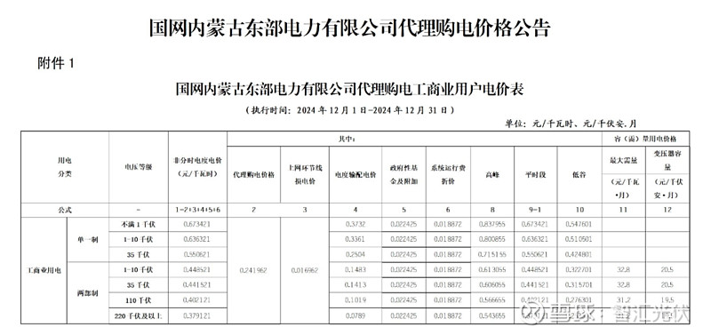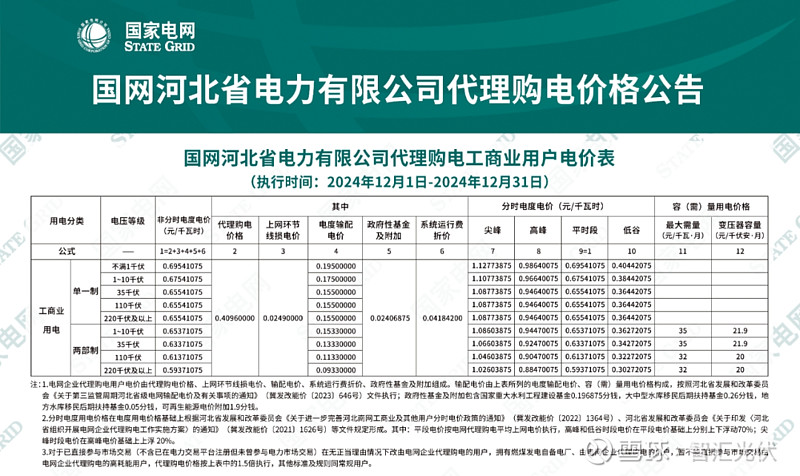 各省销售电价表(2024年12月) 以下为2024年11月各地电网企业代理购电价格表,顺序