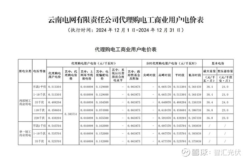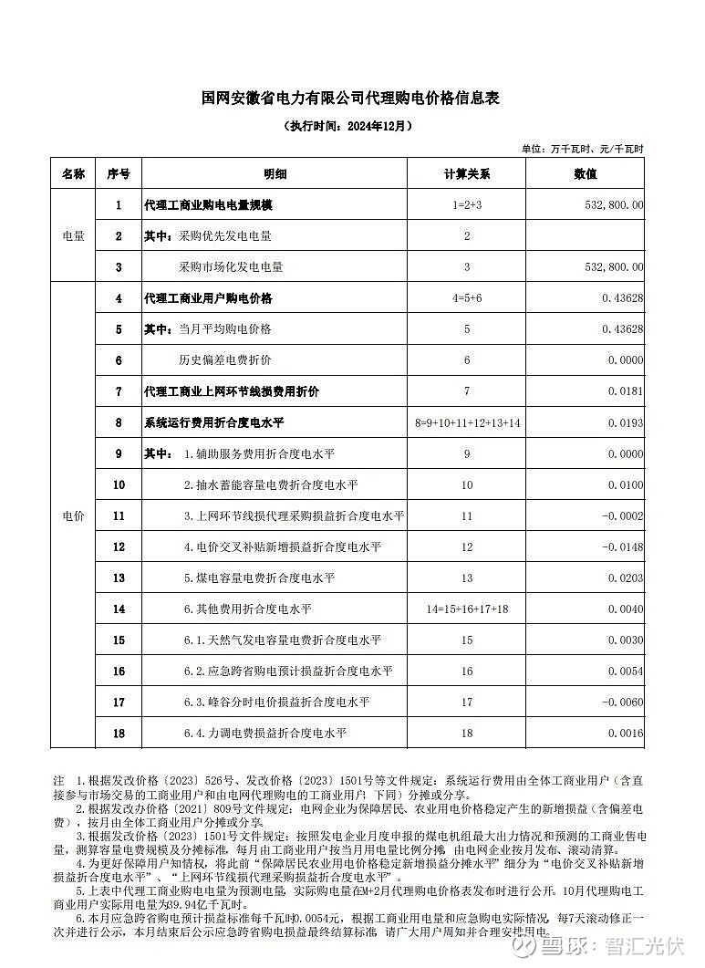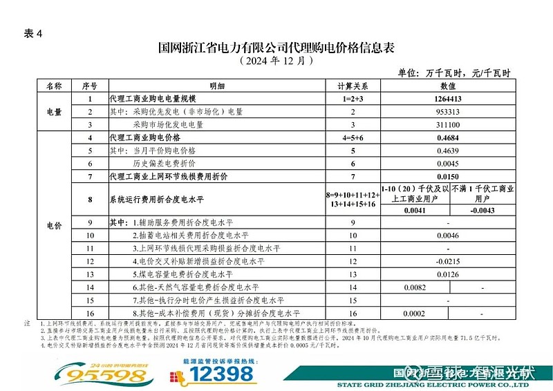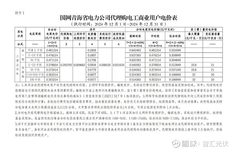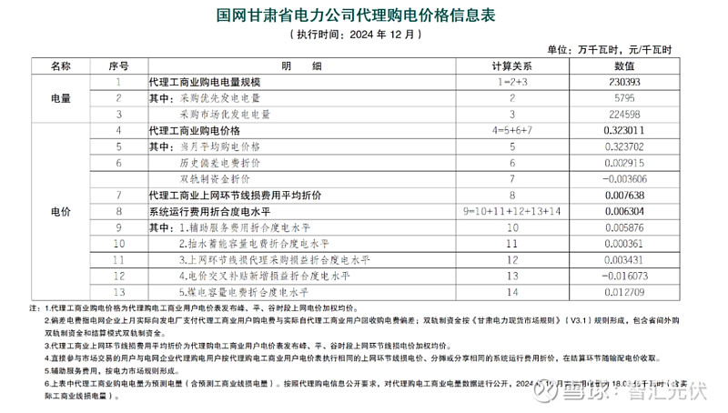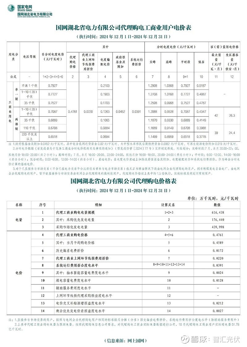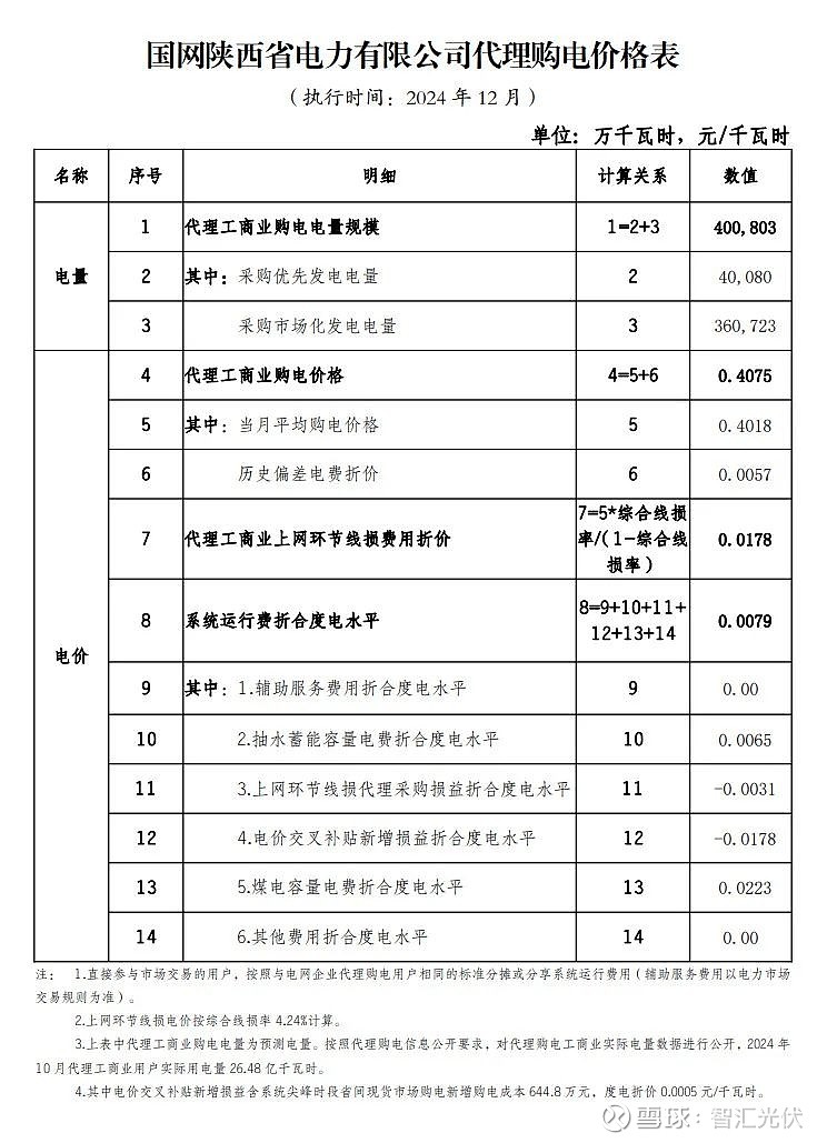 各省销售电价表(2024年12月) 以下为2024年11月各地电网企业代理购电价格表,顺序