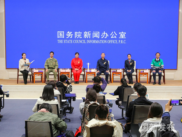 11月24日下午,国务院新闻办公室举行“新当选全国劳动模范和先进工作者”记者见面会。胡洪炜、刘丽、周家荣、刘双燕、潘从明等五位新当选全国劳动模范和先进工作者围绕“岗位成才、奋斗圆梦”与中外记者见面交流。