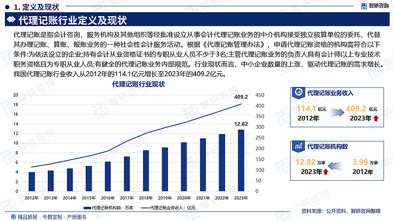 在当今这个信息爆炸的时代,如何精准把握市场动态,洞悉行业趋势,成为企业和投资者共同关注的焦点。为此,智研咨询分析团队倾力打造的《2024-2030年中国代理记账行业发展动态及投资前景分析报告》,旨在为各界精英提供最具研判性和实用性的行业分析。