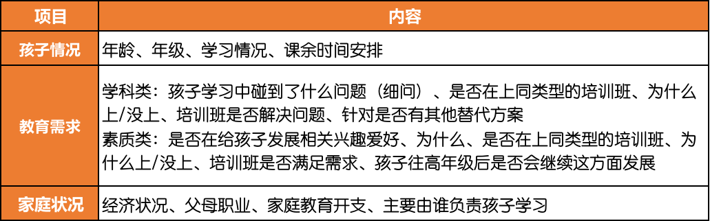 调查的内容不用太多,足够精准即可: