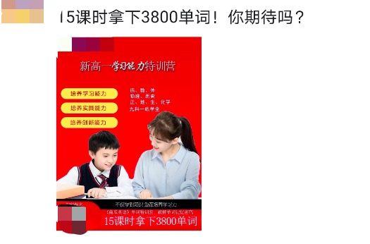 “15课时拿下3800单词”,是一句很棒的文案,有承诺有细节,戳中考生的需求点,光看这句话,是很有吸引力的,在文案的驱使下,我点开大图: