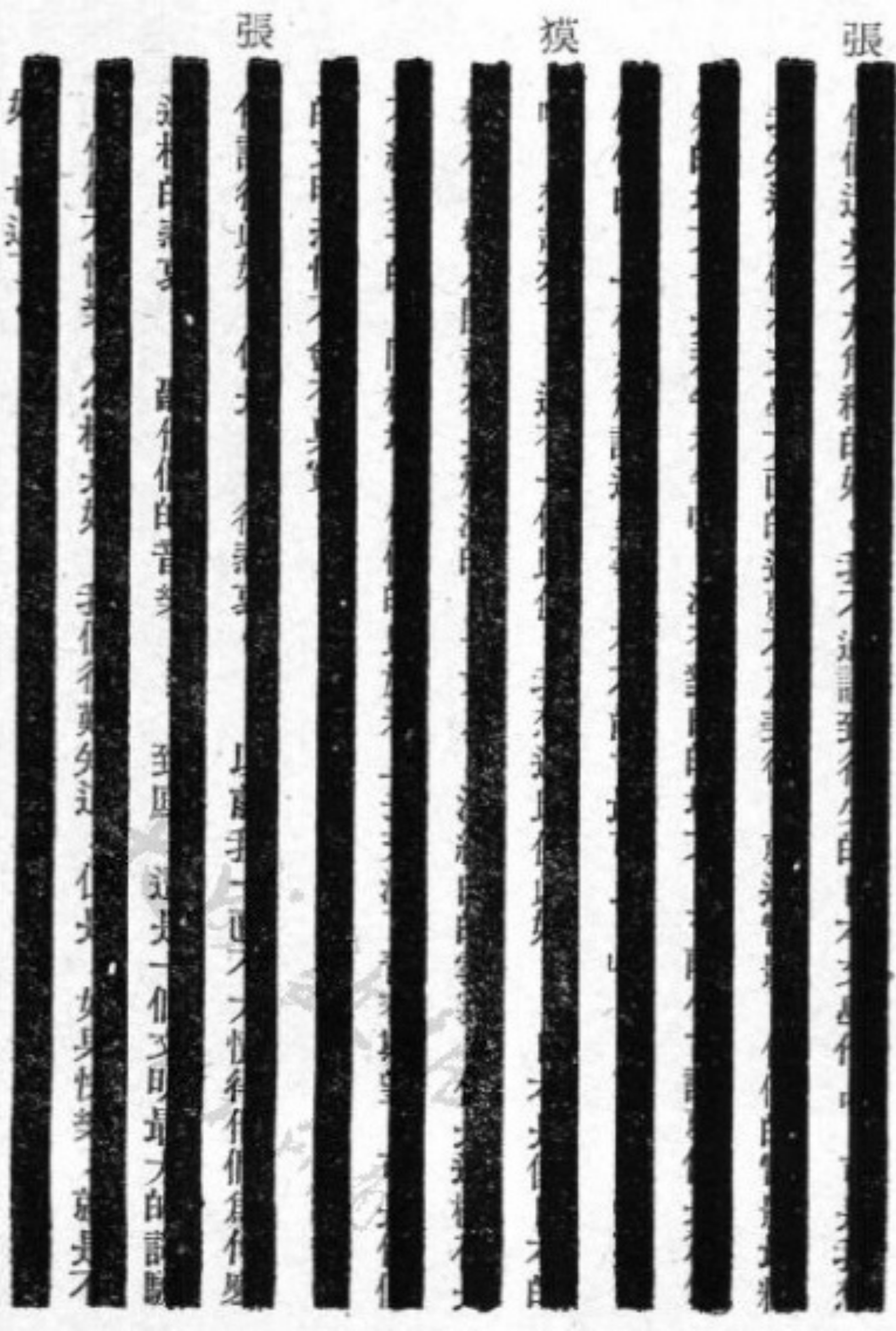 我细看《张爱玲资料大全集》所附图影,发现一点端倪:十二行墨条是后盖在原字上的,位置总不能对得那么完美,唐文标的图影上,墨条就稍稍落偏。