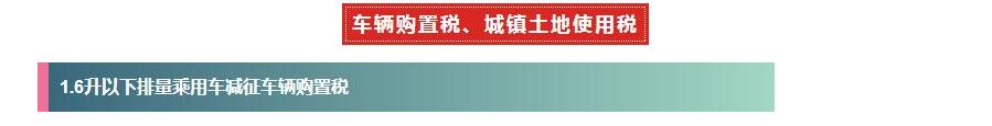1.自2017年1月1日至12月31日,对购置1.6升以下排量的乘用车减按7.5%的税率征收车辆购置税。自2018年1月1日起,恢复按10%的法定税率征收车辆购置税。
