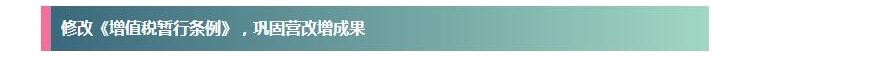 2.此次《增值税暂行条例》修改,并没有涵盖营改增的许多过渡性政策,许多业务,特别是税收优惠政策的处理,还得按照营改增期间发布的文件办理,这是纳税人需要特别重视的地方。