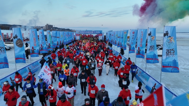 第六届中国东极(抚远·黑瞎子岛)冰上马拉松赛现场。