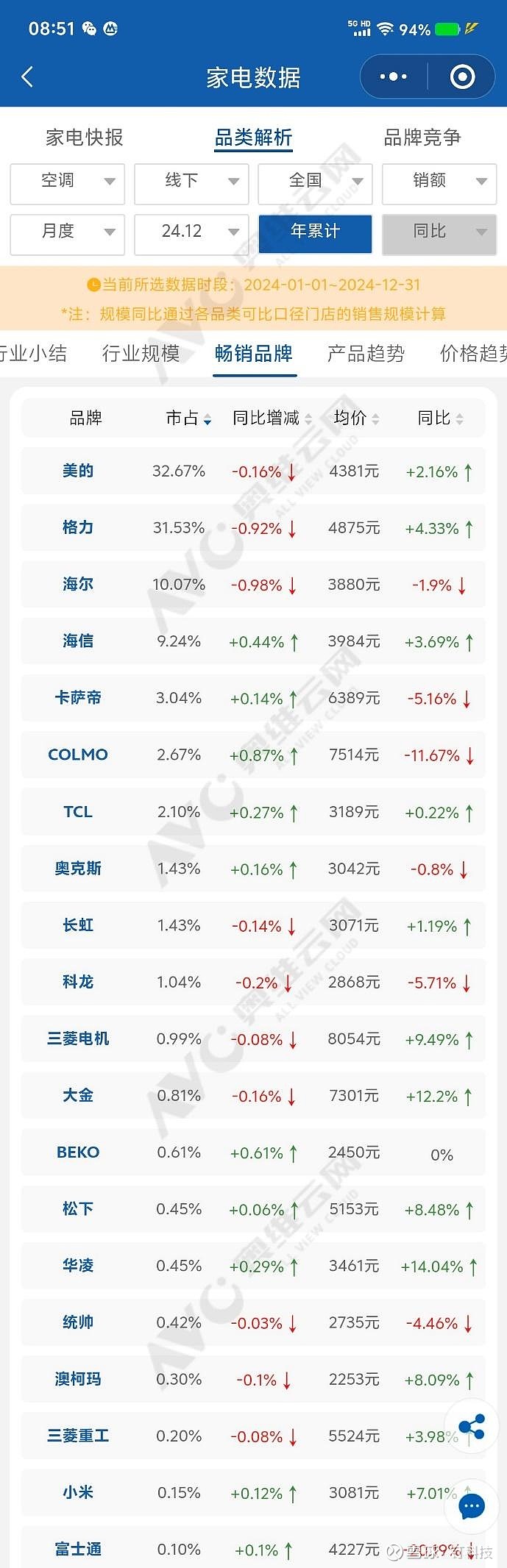 全球空调市占率大金第一,Top3被日韩包揽,中国企业要加力 日前,网上流传一则全球空调市场