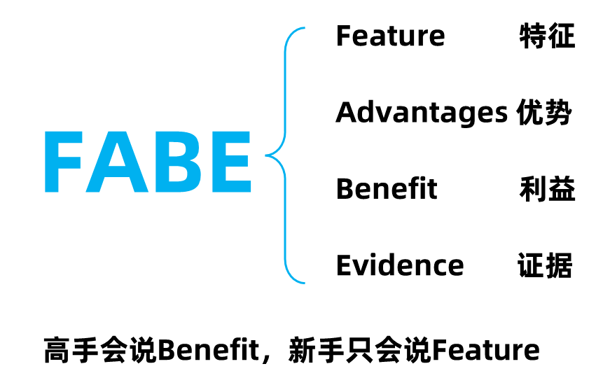 F(Features)——特征,说明产品的特质、特性等基本功能。对于To B市场的产品而言,最常见的是指各类性能指标,以及指标所表明的功能特质。例如电脑产品的CPU品牌以及CPU主频、硬盘、内存的参数等。A(Advantages)——优势,重点说明商品特性究竟发挥了什么功能,可与同类产品比较说明。例如介绍手机产品时,可以这样说明:“我们这个系列的手机续航时间高达20小时,远远高于同类产品,特别适合商务人士的工作需要。B(Benefits)——利益,说明产品的优势能带给顾客的利益。以客户为中心,通过强调顾客得到的利益说服客户购买。例如:“我们这款供电系统可以给贵司一年节约电费200万。”客户一听就明白了这款产品的好处——他可能不了解这款产品的技术,也听不懂技术,但是我们直接说了对他的好处,他马上听得懂、也感兴趣。E(Evidence)——证据,包括成功案例、技术报告、顾客表扬信、报刊文章、照片等,所有作为证据的材料都应该具有足够的客观性、权威性、可靠性和可见证性。证据中有两个资料效果更好,是必备的:第一是成功案例,并且是目标客户所在的行业或相关行业的案例,按照行业整理成册;第二是客户的表扬信,让我们的铁杆客户给我们发布一份表扬信,表扬我们的产品和服务,并加上客户公司盖章,这样的表扬信越多越好,同样可以整理成集,给潜在客户看。当客户翻开厚厚的《表扬信集》和《成功案例集》时,更容易被说服。在使用FABE原则时,需要注意沟通顺序。对于没有销售经验的新手来说,很多开口就是背产品说明书,一个劲儿地说产品的各项性能指标,而忽略一旁的客户是否爱听这些指标,以及是否听得懂。   而成熟的销售高手通常上来先讲B(Benefits)利益,客户听得懂、感兴趣,就接着讲E(Evidence)证据,客户听了这些真实的案例会信服,也会问更多的问题,这时候我们就可以抓住机会,趁热打铁,介绍 F(Features)特征,同时说明A(Advantages)优势,整个销售过程顺理成章,节奏尽在掌控之中。第七步是探寻需求。在交流过程中,重点是倾听,“高手爱听,新手爱说”。通过倾听了解客户的需求、,挖掘客户的需求。通过提问,在了解的客户的需求之后,就要开始引导客户需求——引导客户往自己有优势的方案去思考,提出阶段性的方案,突出产品及服务重点和优势。在下一节我们会详细介绍如何用提问的方式挖掘和引导客户需求。需要说明的是,产品介绍和探寻需求往往是交叉进行的,千万不要机械的只顾介绍产品,忽视了客户的反应。第八步,提出阶段性方案。第一次陌生拜访最好不要超过20分钟。因为毕竟是第一次拜访,双方都不熟悉,第一次会谈的主要目的是和客户见上面,树立良好的第一印象,建立联系,就基本完成任务了。如果交谈过久,由于刚开始对客户还不熟悉,如果出现纰漏,现场弥补效果很可能不好。   “一回生,二回熟”,这次达到目的就尽快结束,避免言多必失的可能性,以后再进行商务拜访就和客户熟悉了,一步步发展搞好客户关系。第九步,预约下次见面。结束前,销售人员需要给第二次拜访预留理由,在离开之前提出阶段性方案,然后提醒客户会进行方案的再次细化,排出一个行动计划表,保持和客户的沟通。第十步,及时反馈信息,保持联系。第一次拜访结束后,离开以后就当天或者第2天给客户发微信或者发邮件,目的是保持联系。后继,当方案有优化调整之后,就及时地通知客户,礼貌地预约客户时间,问问客户何时方便进行下一次会谈,并为下次会谈做好准备。